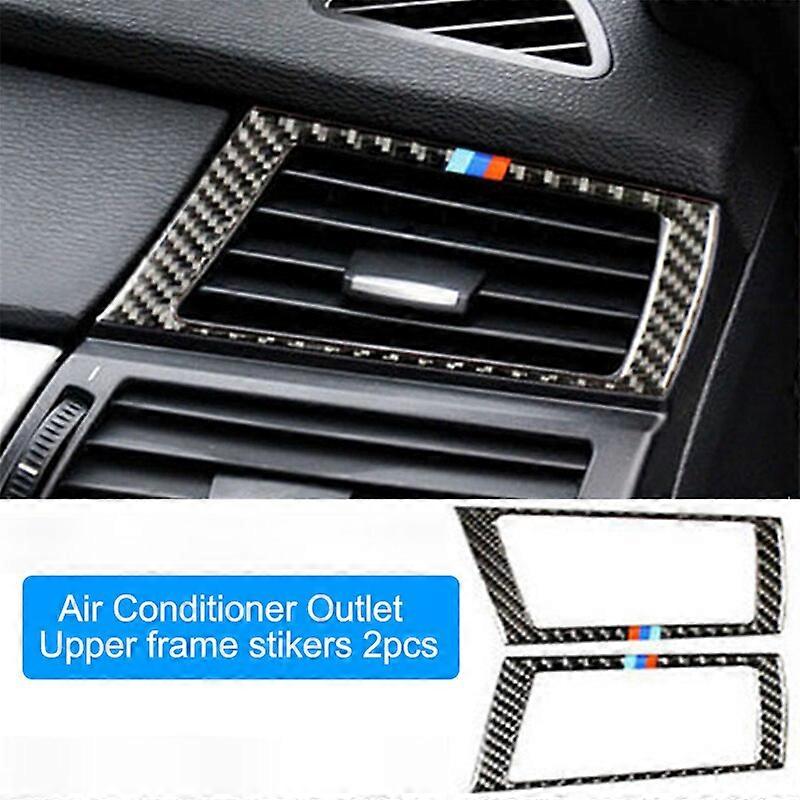 Carbon Fiber Car Control Panel Left-Right Air Conditioner Outlet Frame Cover Stickers For BMW X5 E70 X6 E71 2008-13 Accessories Descriptions: Suitable place: Car left/right air conditioner outlet Material: Carbon fiber Suitable car model: For BMW X5 E70 X6 E71 2008-2013 Features: 1.Waterproof,high-quality,durable,high temperature resistance. 2.Make your car more cool 3.Make your car look more graded 4.Protect your car Package Included: 2pcs x Car left/right air conditioner outlet stickers