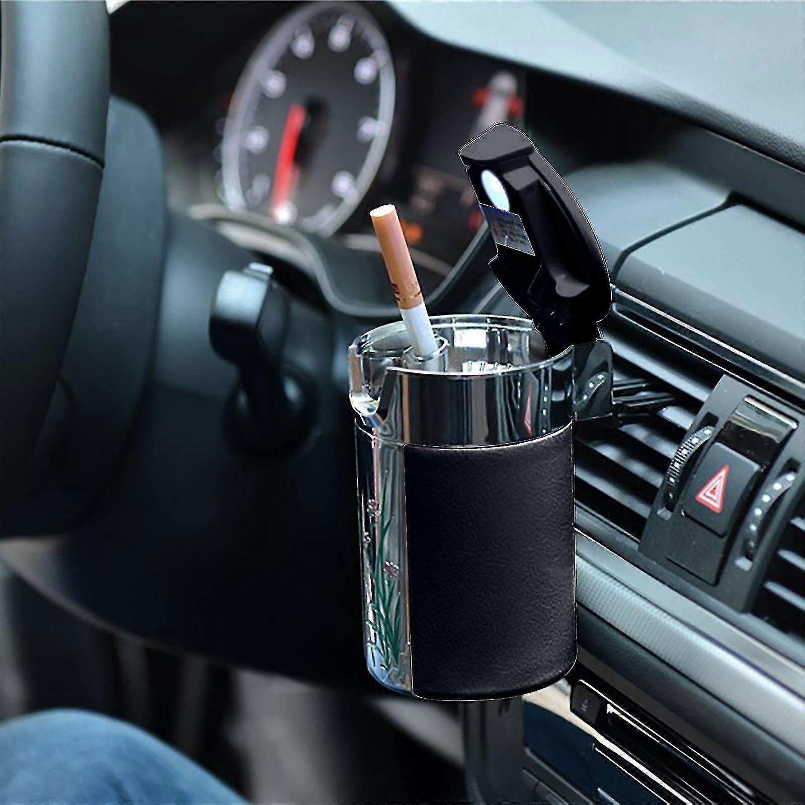 Carbon Fiber Portable Ashtray with LED for Vehicles Easy Installation Practical Car Accessory