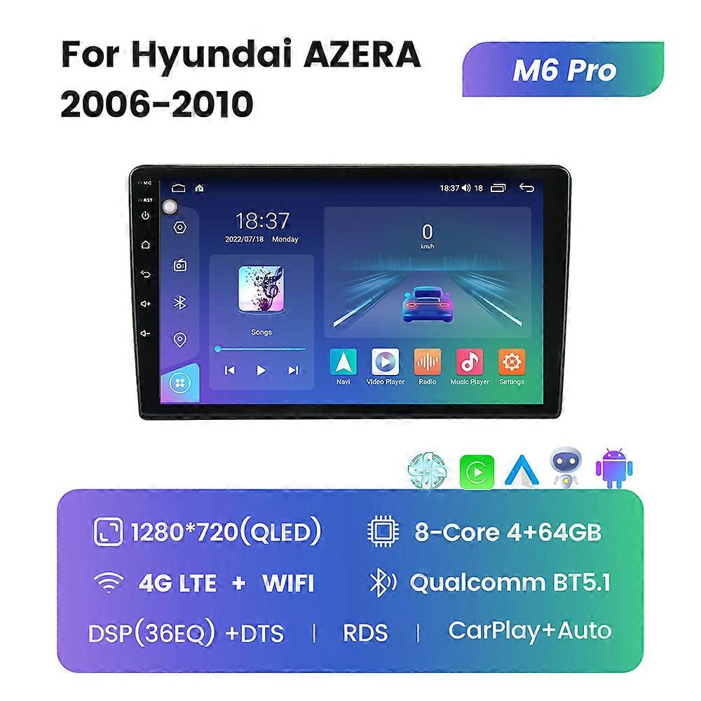 Car Radio Multimedia Video Player GPS Navigation Android 12 8G+128G For Hyundai AZERA 2006-2010 Built-in Carplay Auto WiFi+4G BT