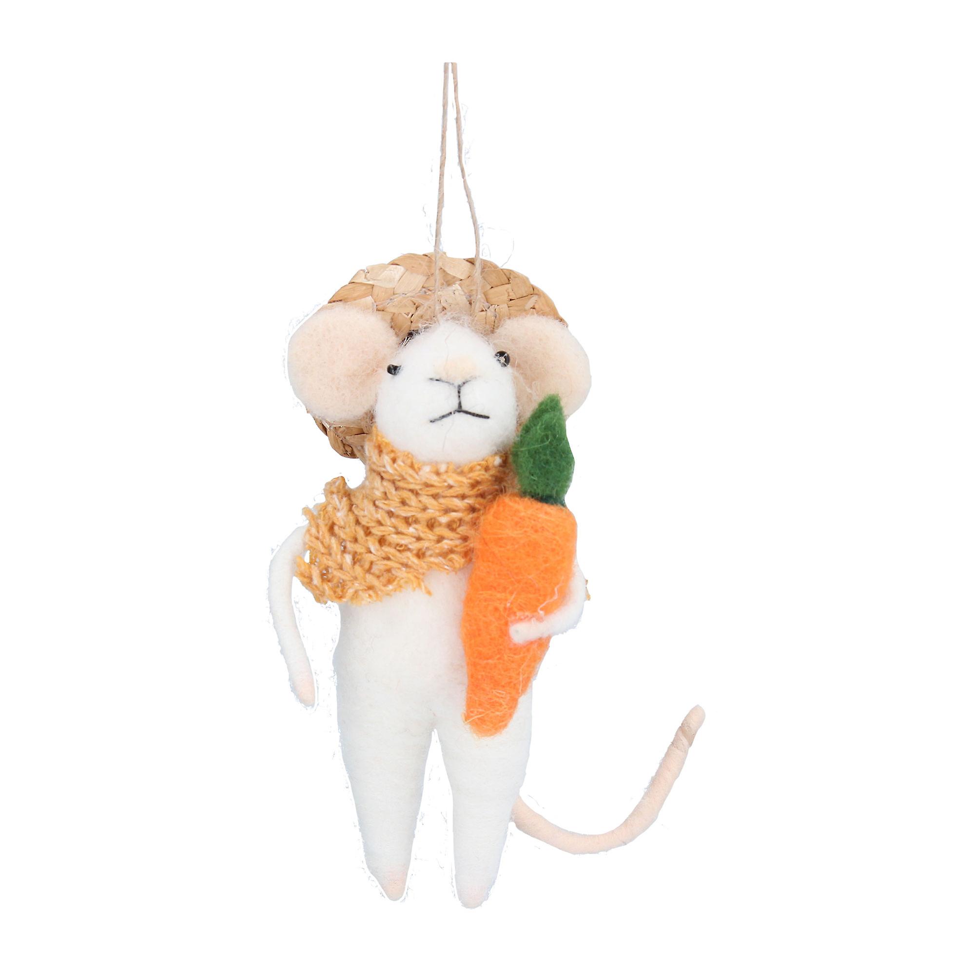 Gisela Graham Felt Mouse With Carrot Easter Decoration