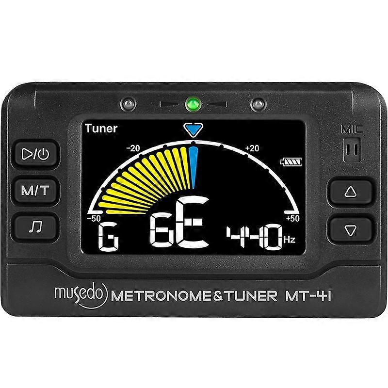 The metronome and tuner can be used simultaneously or independently. This unique device is all you need to practice keeping the rhythm and the right tone. Will be very useful no matter what instrument you play. Featuring a mic cable and a pitch range between 410 and 450 Hz, and it is incremented by 1 Hz. It will tune any instrument that makes an audible sound. Easy adjustment of the Tempo: Allows you to set any tempo between 30 and 260 bpm in a single step, and helps improve your timing in a rich variety of musical styles. Incredible Features: Has a retro -two-level lighting that improves visibility of the LCD screen. Can be connected to the earphone for practice. The volume is adjustable according to usage habits. 2 AAA batteries and a microphone cable are included. Color: Black Delivery quantity: 1 piece