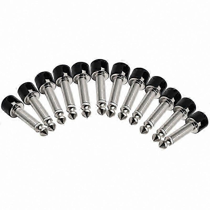 12Pcs Solder-Free 6.35mm Mono Plug DIY Audio Connector for Guitar Effects - Chrome Black Finish