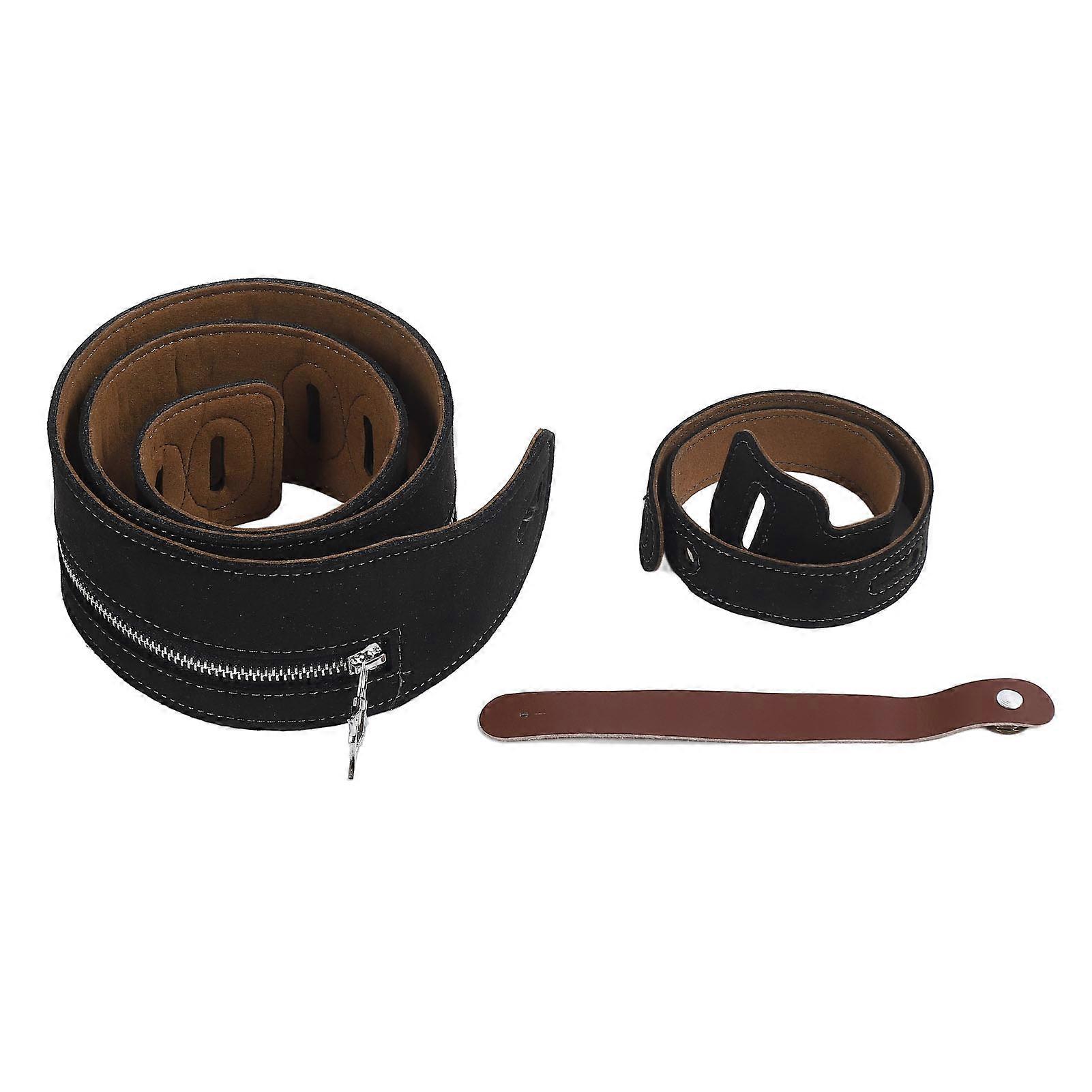 Guitar Strap Punk Zipper Universal Soft 2.8in Widen for Acoustic Electric Guitars Bass Suede Surface Black