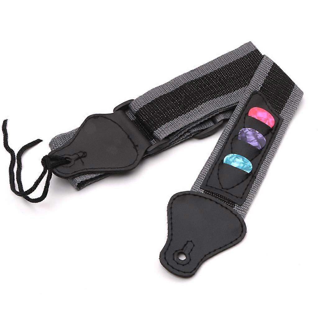 Guitar Strap Folk Electric Acoustic Guitar Strap with Picks Celluloid Guitar Strap(2pcs, grey + black)