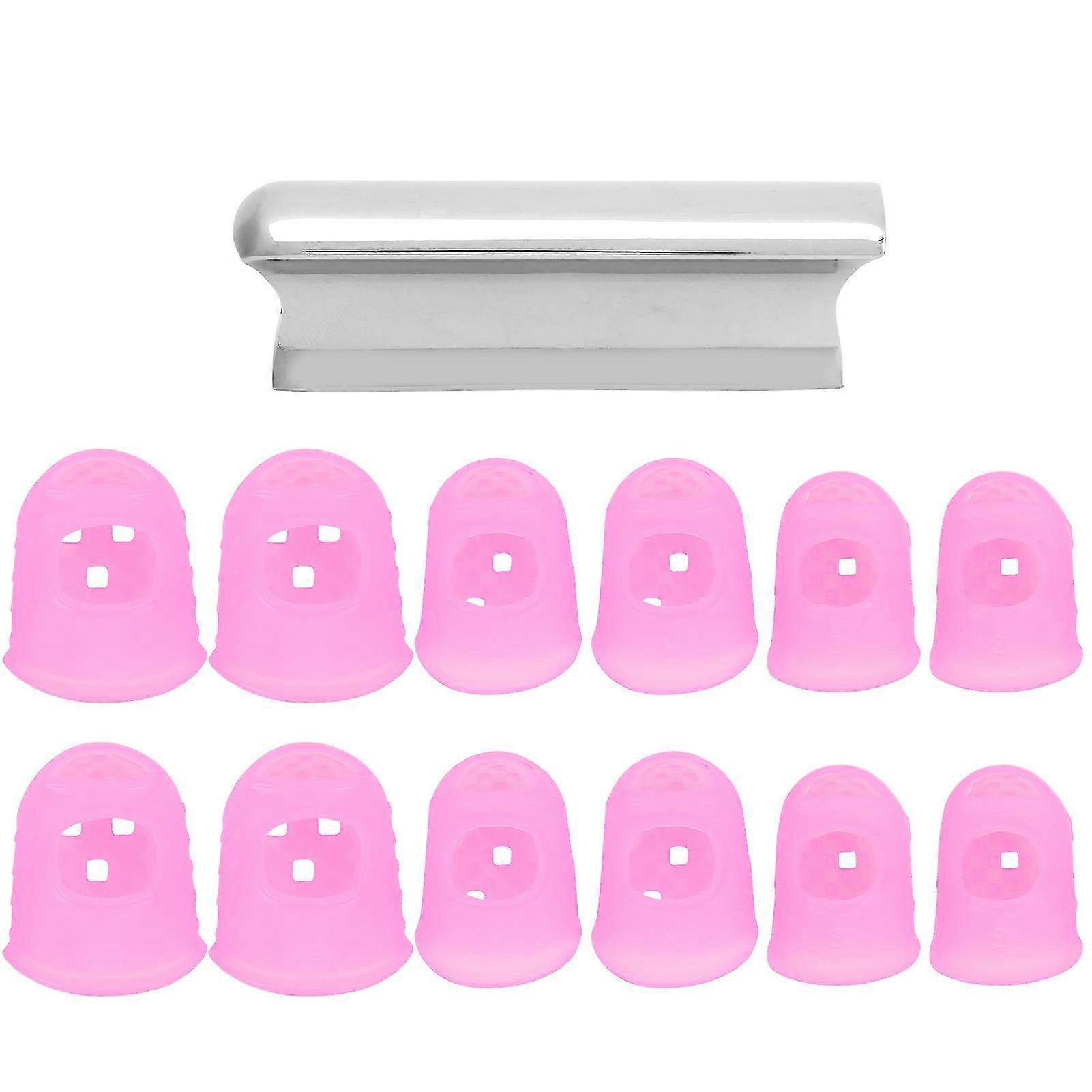 Guitar Sliding Bar Zinc Alloy Grooves Round Tip with 12 Silicone Finger Protectors for UkulelePink