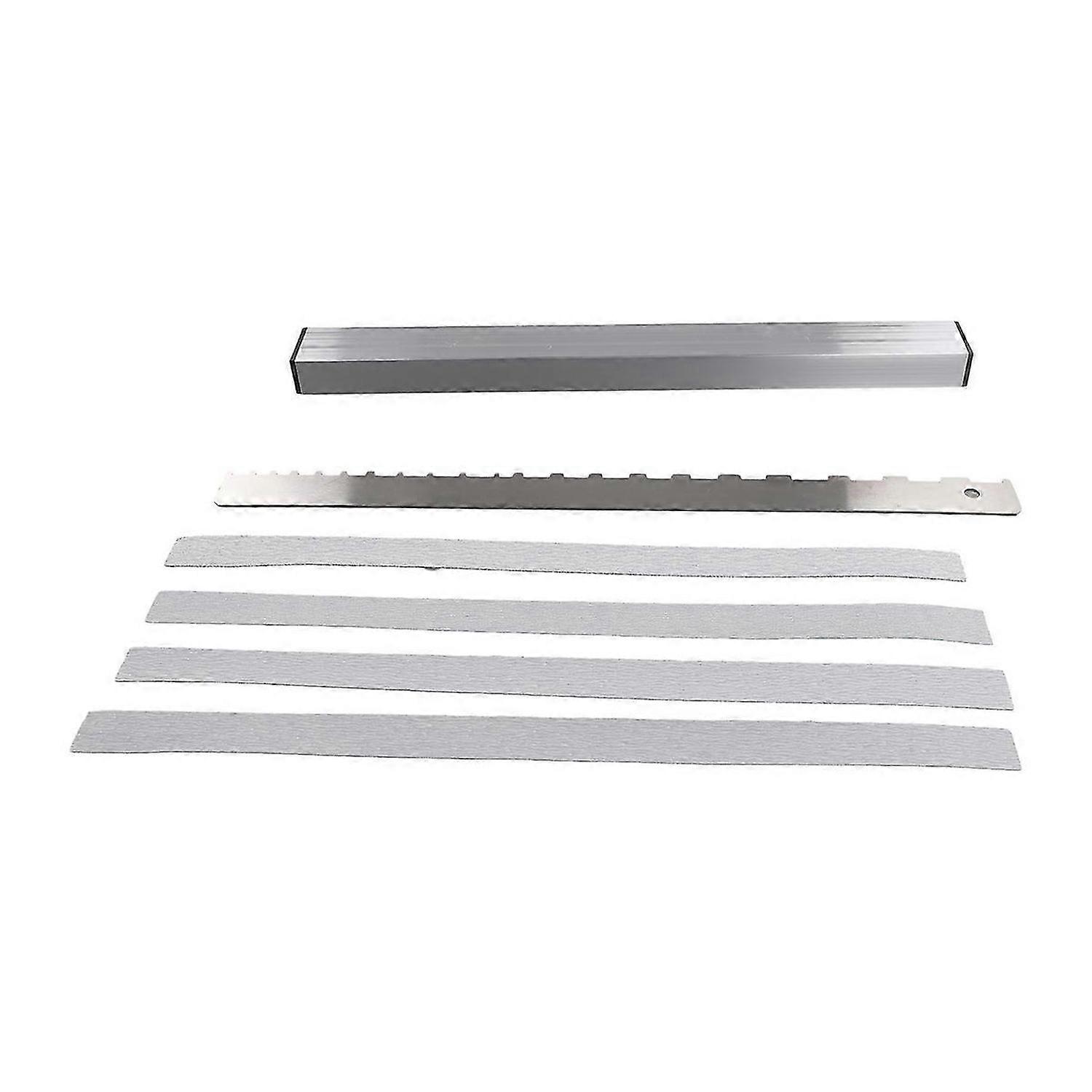 Brand new and high quality. Specially designed for the leveling of guitar necks. The guitar leveling bar itself comes with four different pieces of self-adhesive sandpaper that can be polished to varying degrees. The black is used for rough grinding, the gray is used for fine grinding, and the white used for polishing, which makes the guitar look brand new. It works well with most guitars, special for electric guitars, an ideal tool for checking the straightness and flat of the guitar fretboard and frets. It is a necessary operation before you begin a performance.<br><br>Great for checking guitar neck straightness and flat of the fretboard and frets. Colour:Silver Material:Zinc alloy + iron<br><br>Package Contents: 1x Guitar Fret Ruler kit<br><br>Only the above package content, other products are not included. Note: Light reflection and different displays may cause the color of the item in the picture a little different from the real thing. The measurement allowed error is +/- 1-3cm.