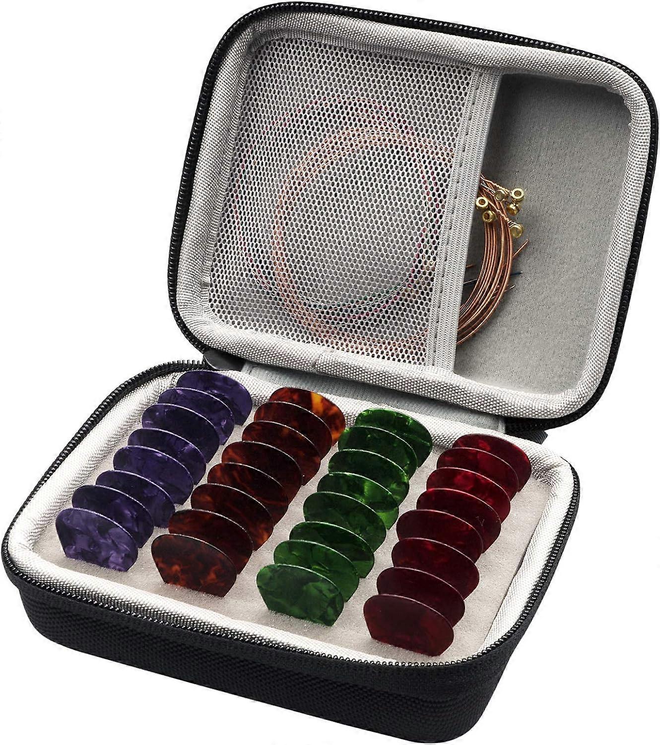 Dunlop/Donner/Haneye/ChromaCast/SUNLP Musical Instrument/CC CAIHONG 0.46mm 0.71mm 0.96mm picks. [Easy Use]: Smooth strong zipper easy to open and close, allows you easy to put in and out of the case, mesh pocket can store more other small guitar accessories. [Durable Guitar Picks Holder]: Made of hard EVA materials, with good waterproof and shock resistance. Soft inner foam cut fits your picks snug and more stable, protect guitar picks against from scratches and dust effectively. [Large Capacity Pick Collection]: Storage case can holds 50+ picks, enough space for all your picks, keep your guitar well organized and safety, you would loss your picks anymore and can grab one instantly if you drop song. [Ideal Game Gift]: Whether it is a party or a trip, guitar kit holder is a good choice. It is also a perfect choice as a gift, allowing you to play soft guitar picks with your band and friends. Colour: black Product includes: 1pc Size: 15*12*5.5 cm Notes: Please allow 1-3cm error, due to manual measurement, please make sure you don't mind before bidding. Due to the difference between different monitors, the picture may not reflect the actual colour of the item. Thank you for your support!