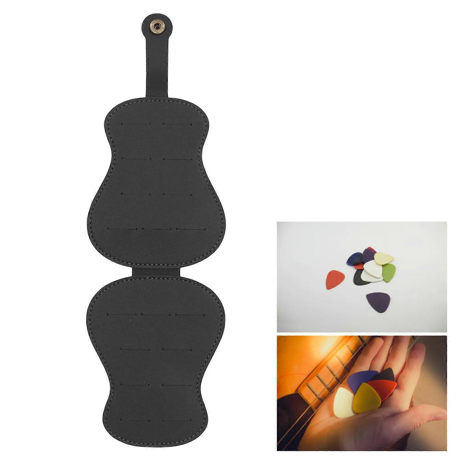 Guitar Pick Holder Case PU Leather Plectrum Holder 18 Slots Large Capacity Storage Black