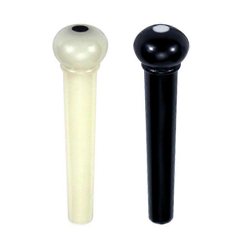PACKAGE INCLUDES: 24 pcs of plastic bridge pin - 12 x Ivory and 12 x Black. SIZE OF BRIDGE PIN: Bridge Pin total length 30mm/1.3", Length of post 26mm/1", Skirt /Collar: 5.33mm/0.21", Diameter of the head 8.5mm/0.33". HIGH QUALITY: The bridge pin is made of light plastic material, chemical stability, will not rust. It has excellent transparency and abrasion resistance. FOLK GUITAR BONE NUT AND SADDLE: Made of real cattle bone, which can offer a better tone than plastic. Product description Bridge Pin: Total Length: 30mm / 1.3in Color: black, Ivory Material: ABS plastic Packing List: 12 x Acoustic Guitar Bridge Pins (Black) 12 x Acoustic Guitar Bridge Pins (Ivory)