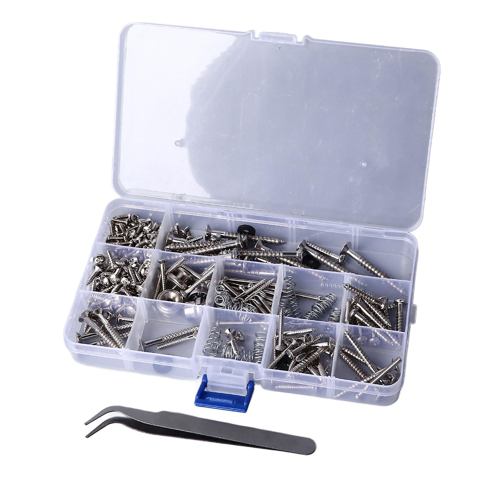 Guitar Repair Screw Kit Electric Acoustic Guitar Mounting Screws Strap Buckles Kit Luthier Tool with Tweezers Silver