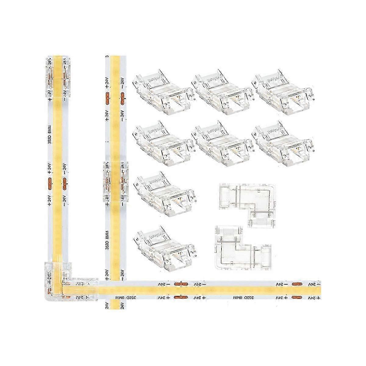 Gapless 8mm 2 Pin COB Connector 8 Pack and L Shape 2 Pin 8mm Cob LED Corner 2 Pack for 8mm Cob Ligh