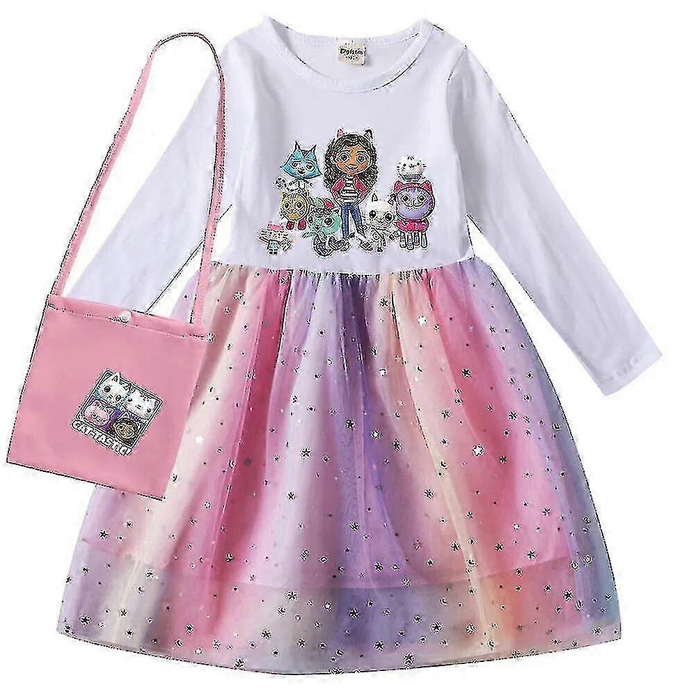 Gabby Cats Baby Girl Dresses Kids Gabbys Doll House Clothes Carnival Cosplay Costume Children Long Sleeve Casual Dress With Bag