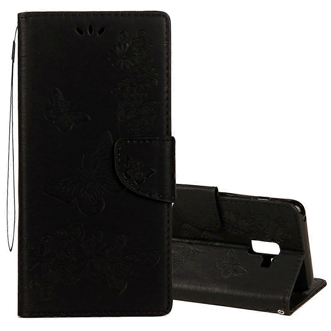 For Galaxy A8+ Vintage Embossed Floral Butterfly Pattern Horizontal Flip Leather Case with Card Slot & Holder & Wallet & Lanyard