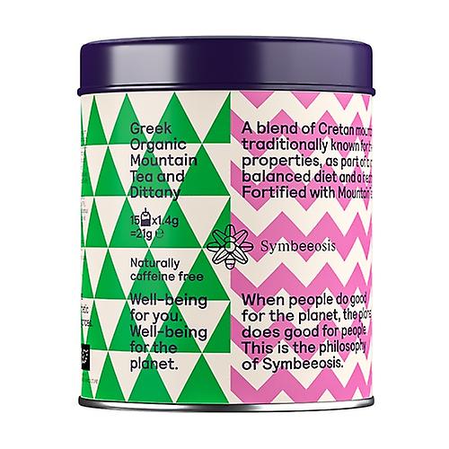 Biologische Griekse bergthee en aromatische kruiden (dittany) van Symbeeosis, welzijn voor u, revitalisering en betere spijsvertering. Welzijn voor de planeet, door planten te kweken waar ze van nature voorkomen, zodat het ecosysteem niet wordt aangetast. Bovendien is het verrijkt met extract van gedroogde bergthee, wat de werking versterkt. Van nature cafeïnevrij. Ideaal na iedere maaltijd voor een betere spijsvertering, maar ook op elk moment van de dag om het lichaam fysiek te versterken. Het heeft een licht kruidige geur en een aangename smaak met een vleugje oregano.