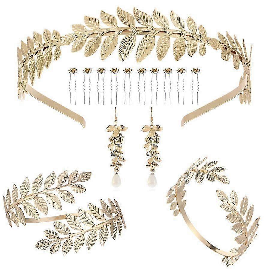 Greek Goddess Headband, 5 Pcs Greek Goddess Headband Crown, Roman Leaf Crown, Roman Laurel Bracelet Leaf Headband Hair Bands compatible Women