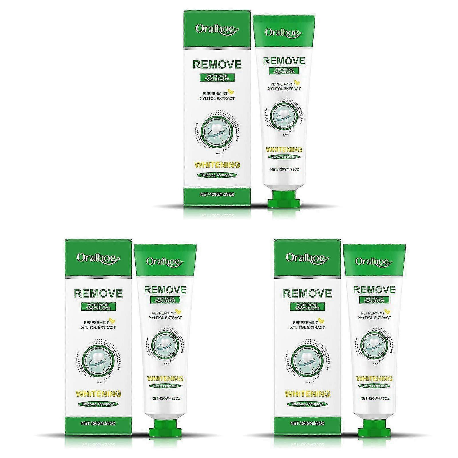 Features Whitening Power: Whitening Toothpaste utilizes advanced whitening agents to brighten and Refreshing your smiles. Fresh-Breath: Formulated with natural ingredients to eliminating odor-causing material and leave your breath feeling-fresh. Oral Health: Helps maintain oral hygiene by gently removing plaque and surfaces stains. Refreshing Flavors: Invigorating minty taste creates a pleasant brushing experience. Daily Oral Care: Designed for everyday use, keeping your teeth strong and your mouth feeling-fresh with regular brushing, keep the mouth-fresh for a long time. Notice: 1.Actual color may be slightly different from the image due to different light effect 2.Please allow 1-3cm deviation due to manual measurement Description: Net weight: 120g Package List: 1/2/3pcs Ultra Whitening Toothpaste Note: Due to the light and screen setting difference, the item's color may be slightly different from the pictures. Please allow slight dimension difference due to different manual measurement.
