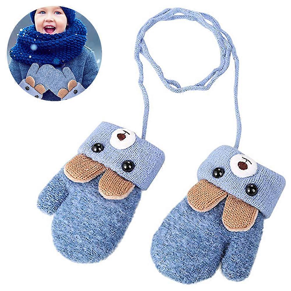 Kids Cute Cartoon Fox Warm Gloves with Hang Neck String Thicken Knitted