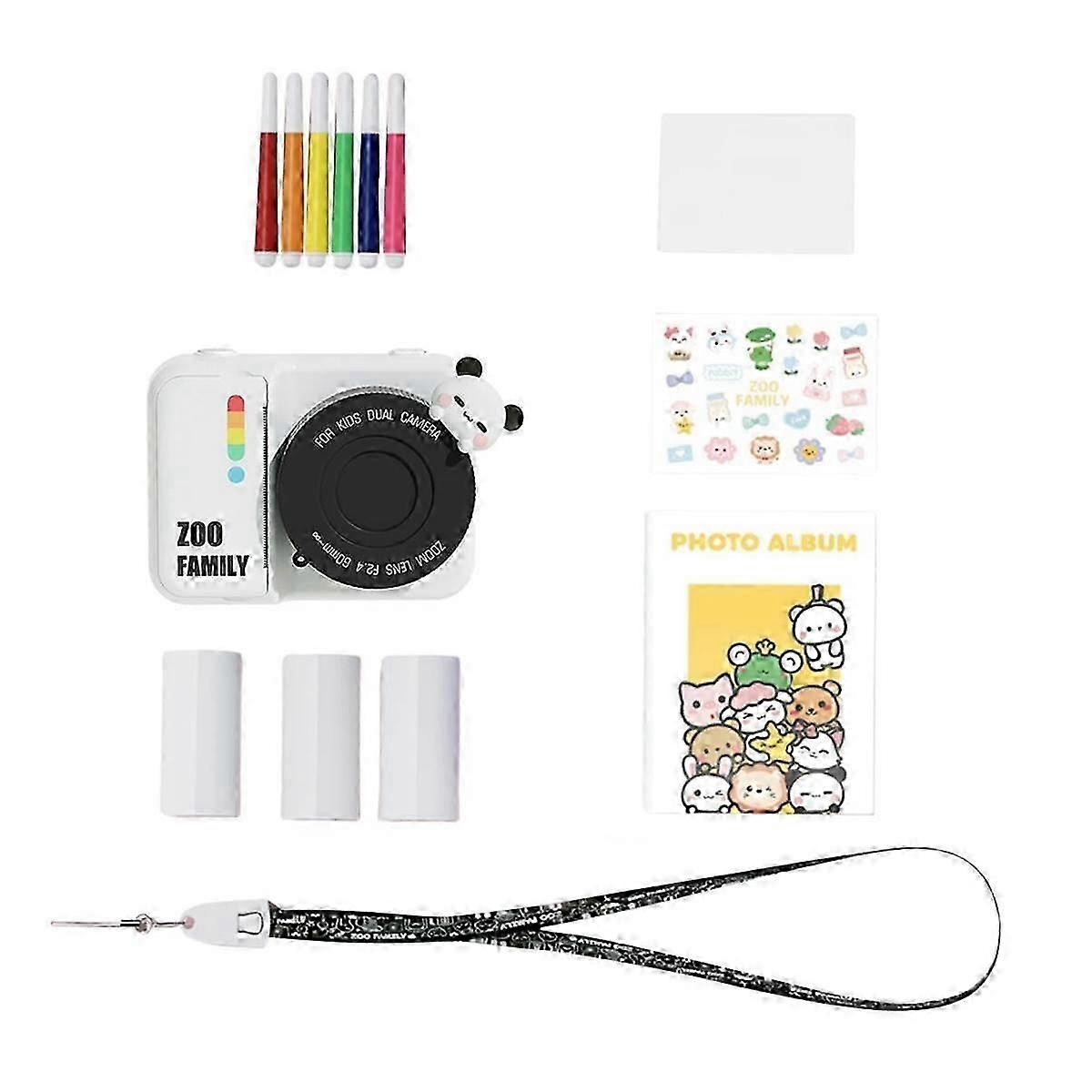 High-Resolution Instant Camera: This features a 3.0-inch screen and a high-definition 48-megapixel sensor, allowing you to capture stunning photos instantly. The built-in cartoon protective cover design adds both style and protection. A single roll can print up to 70 photos. Versatile Photo and Video Functions: With the ability to take photos and record videos, this instant camera offers a range of possibilities. It comes with modes and a user-friendly interface, making it easy for anyone to capture their favorite moments. HD Video Recording: In addition to capturing high-resolution photos, this HD digital camera also supports 1920 x 1080 resolution video recording. You can effortlessly document precious memories in vibrant detail, ensuring that every special moment is preserved in dynamic motion. Easy Photo Printing and Sharing: Select your preferred photos from your album, press the print button, and watch as your memories come to life with exquisite detail. By using the DiDi Cam App, you can easily transfer photos and videos taken with the camera to your smartphone for convenient sharing. Moreover, the app allows you to print photos from your phone as well. Fun and Features: With a range of adorable stickers and filters, this video camera brings a of fun and inspiration to your photography experience. The strap even more convenient to carry around, featuring a Type-C interface that is compatible with most smartphones for easy charging. Product name: Instant print camera Material: ABS color: White Photo pixels: 48 million pixels front and rear Video resolution: 1920 x 1080 Screen size: 3.0 inches Battery capacity: 1500mAh Maximum expansion capacity: 64GB Different batches may have different accessories, which does not affect use. Package Contents: 1X Print Camera 3X Thermal Paper 1X Data Cable Lanyard 6X Colored Pens 1X Sticker 1X Photo Album 1X64G card Only the above package content, other products are not included. Note: Light reflection and different displays may cause the color of the item in the picture a little different from the real thing. The measurement allowed error is +/- 1-3cm.