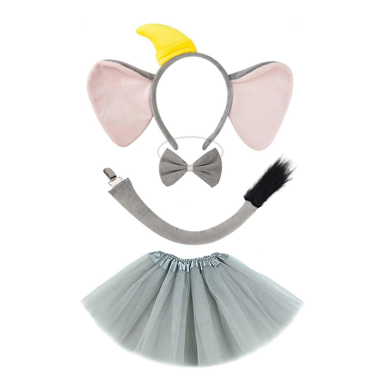 Kids Elephant Costume Set Elephant Ear Headband Tail Bowtie Tutu Skirt for Halloween Christmas Animal Cosplay Kits