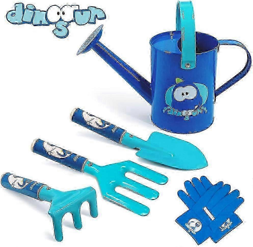 Kids Gardening Set, 5PCS Cute Metal Gardening Tools for Kids, Include Metal Watering Can, Wooden Handle Trowel (Blue)
