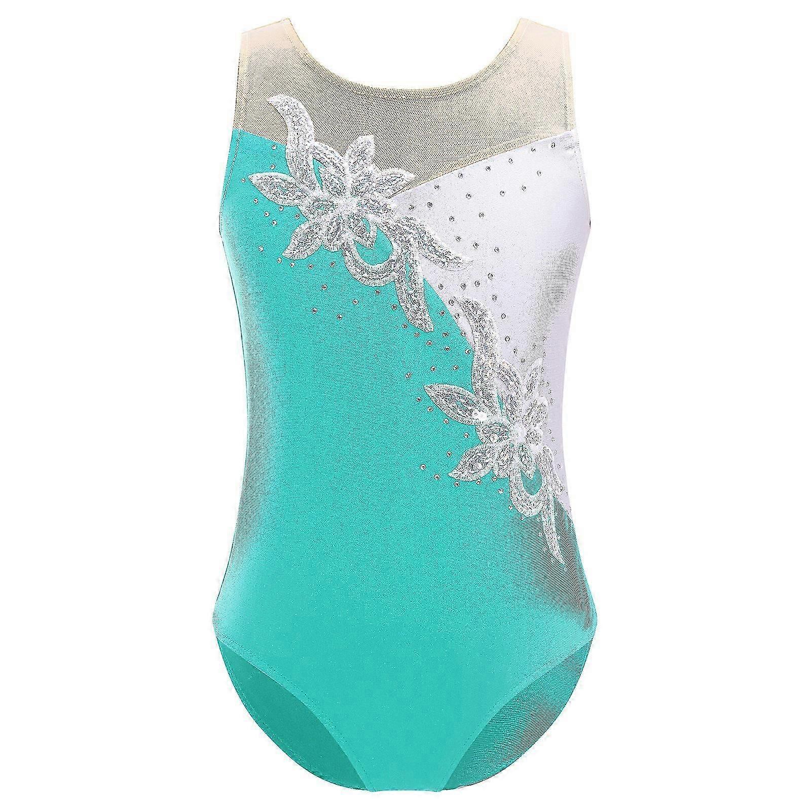 Kids Girls Rhinestone Sequins Gymnastics Leotard Ballet Dance Bodysuit Stage Performance Dancing Jumpsuitl