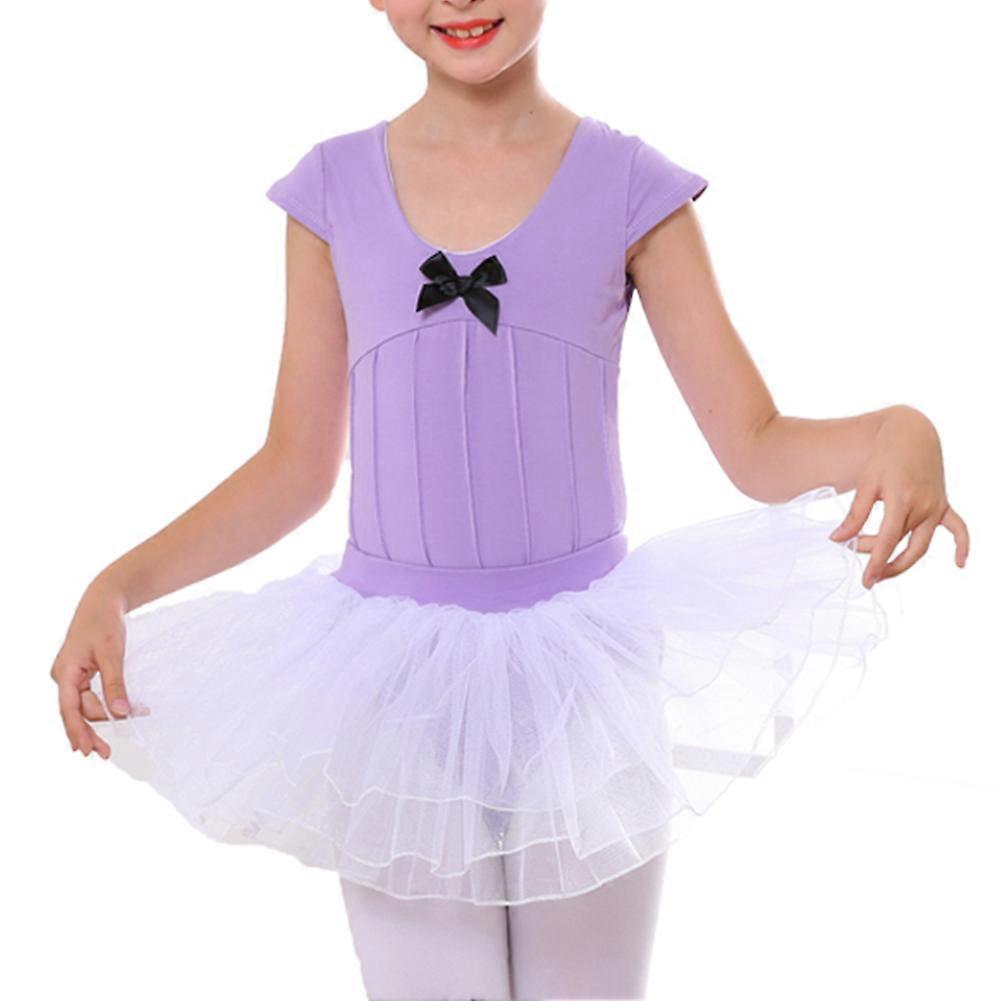 Kids Girl Ballet Dancewear Sleeveless Dance Gym Practice Clothes Top Skirt (Light purple 140)