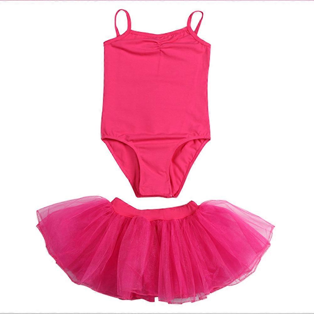 Kids Girl Ballet Dancewear Sleeveless Dance Gym Practice Clothes Top Skirt (Rose red 110)