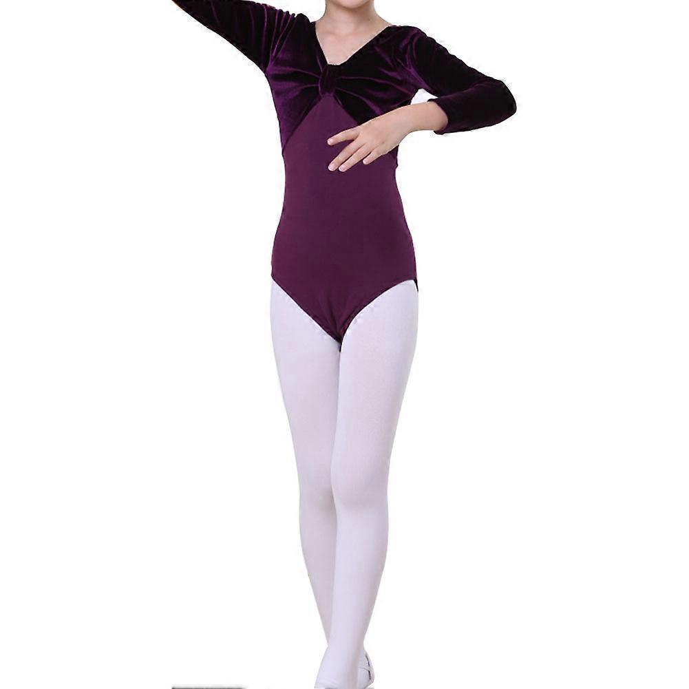 Kids Girl Ballet Dancewear Long Sleeves Dance Gym Practice Clothes Top Skirt (Dark purple 140)