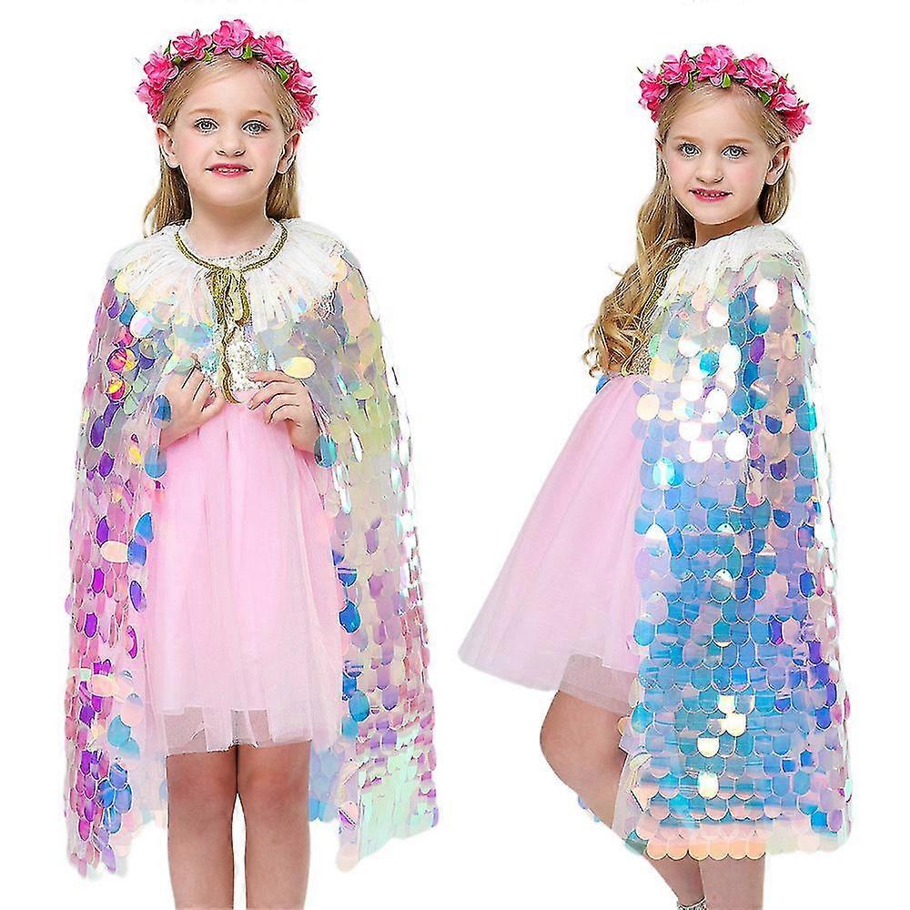 Kids Girl Mermaid Cloak Colorful Sequin Capes Princess Cloak Shiny Bright Party Costume TY
