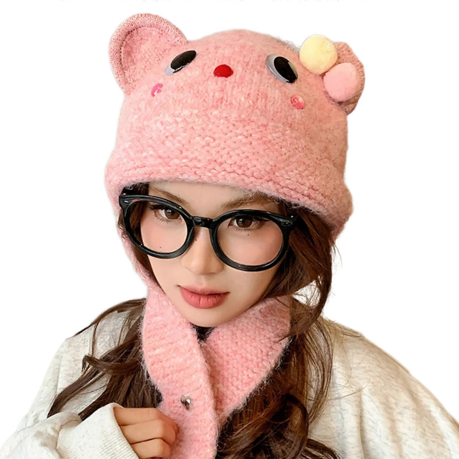 Kids Cartoon Head Wrap Thicken Knit Bear Hat for Climbing Skiing Sports Headwear White Bear Hat Oversized Headwear Pink