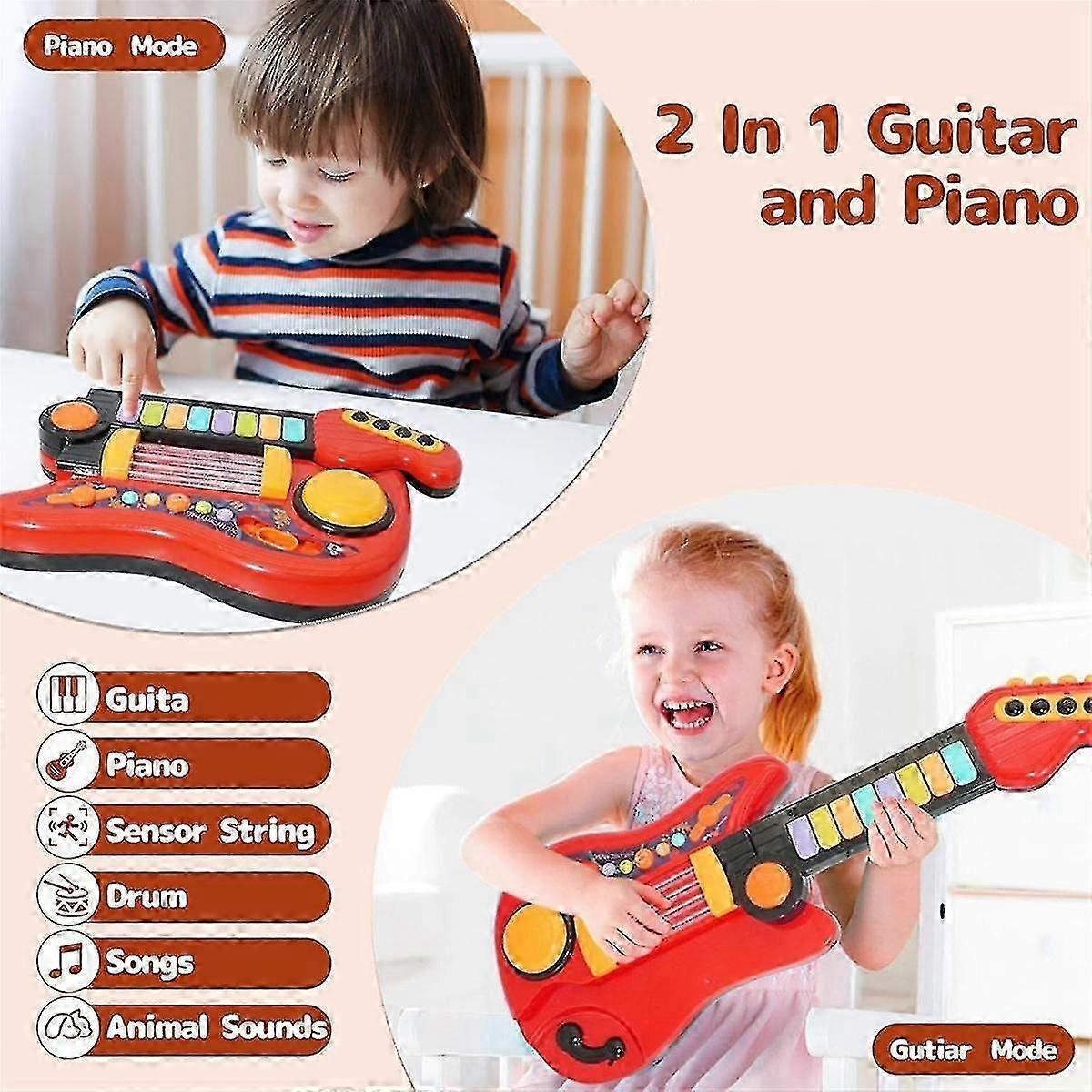 Kids Guitar and Toddler Piano 2 in 1 Guitar for Toddlers 3-5 with Strap Toy Guitar for Beginner Children Kids Gift