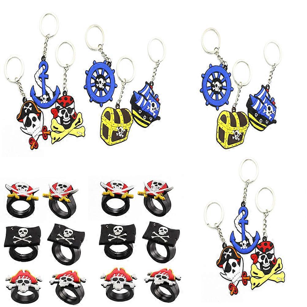 Kids Keychains Cute Pirate Silicone Ring Mixed Pattern Any Occasion Accessory 3.9×2.0×0.1In 24Pcs