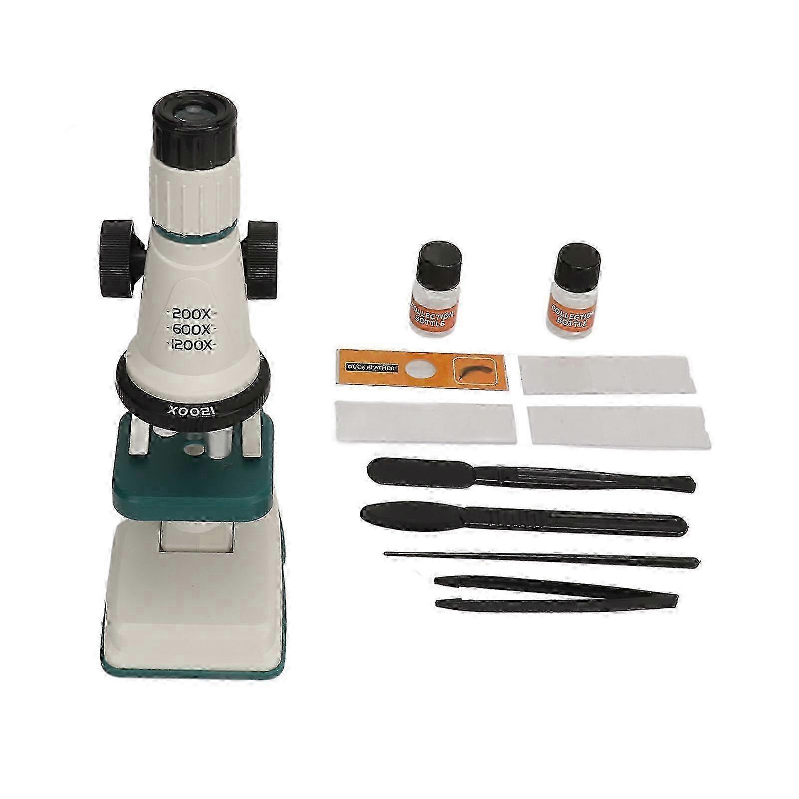 Kids Science Kit 200 to 1200X Magnification Flexible Angle Adjustment Microscope Set with LED Light