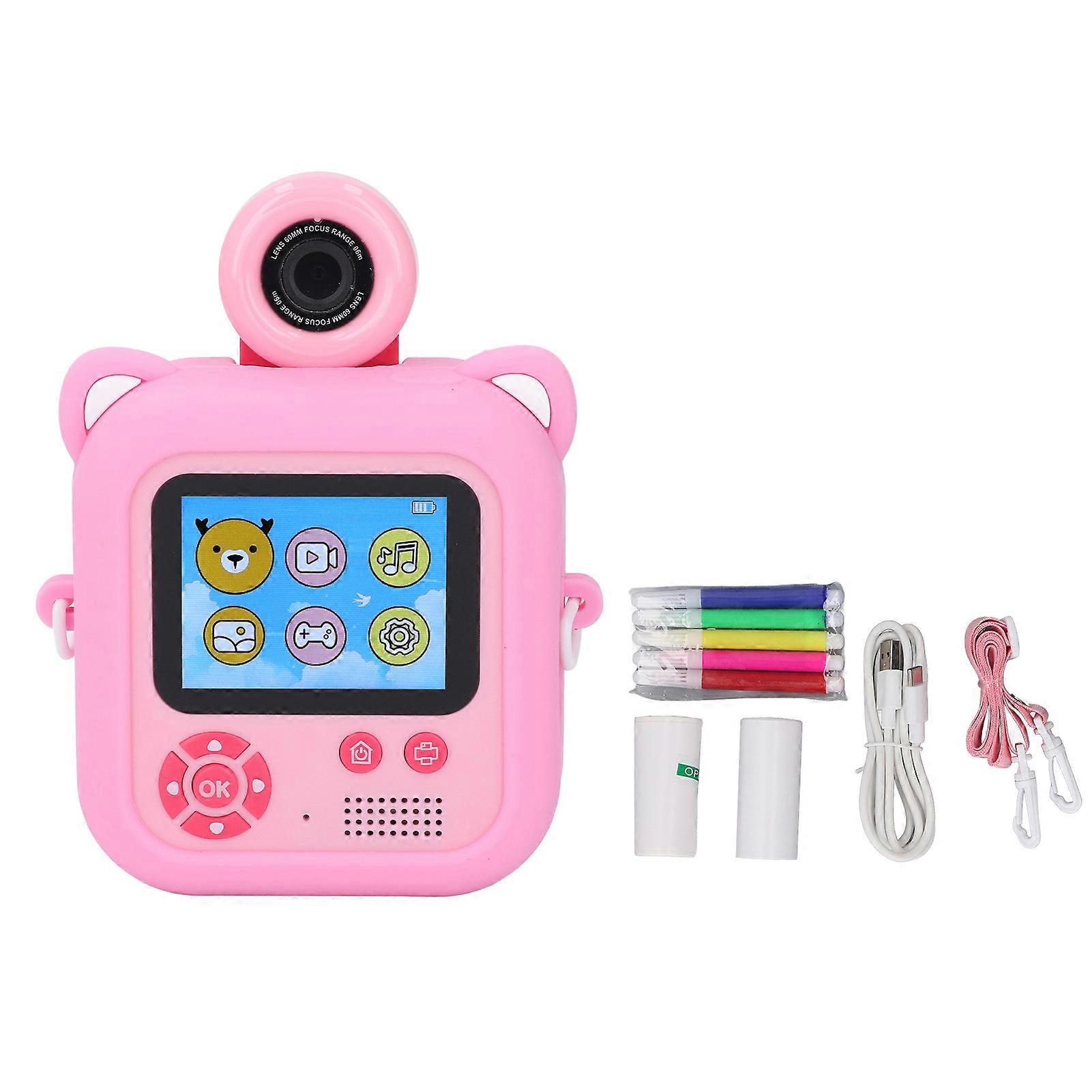 Thermal Printing: Transform cherished moments into tangible keepsakes with the convenient thermal printing feature of this kids' digital camera. Simply capture a photo, press the print key, and instantly receive a physical copy of your child's captured moment, making it perfect for scrapbooking and sharing. 180 Degree Rotatable Lens: Designed with a 180-degree rotatable lens, this camera makes taking selfies a breeze. The high-definition dual cameras deliver clear and vibrant shots every time, ensuring your child captures every adventure with ease and clarity. Convenient Design: Built with young photographers in mind, this toddler camera includes an anti-lost lanyard for secure portability and drop-proof durability. It's ideal for active kids on the go. The camera also features built-in multiple filters and digital photo frames, allowing your child to unleash their creativity and personalize their pictures. 2.4 Inch HD IPS Screen: Equipped with a 2.4-inch high-definition IPS screen, this kids' camera provides a crisp and vivid display, enhancing the viewing and shooting experience. This feature allows children to easily frame their shots and review their photos with satisfaction. Long Battery Life: With a built-in 1200mAh lithium-ion battery, this print camera supports over 2000 photos or 90 minutes of video recording on a single charge. This ensures uninterrupted fun and creativity, allowing your child to capture and enjoy countless memories without frequent recharging.