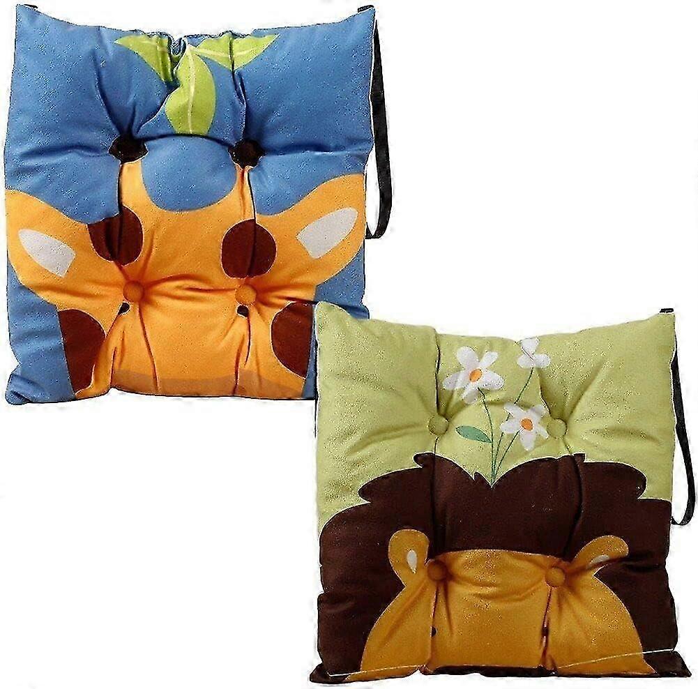 Kids Chair Seating Cushion 2pcs Cute Cartoon Giraffe Animal Fun Thickened Seat Padding for Kitchen Patio