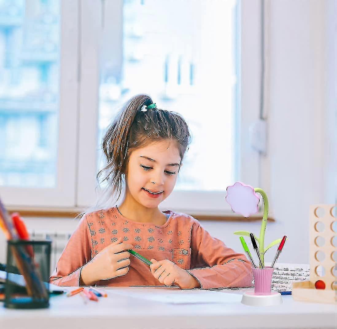 Kids Desk Lamp - LED Touch Sensor Table Lamp with Pen Holder (Pink)