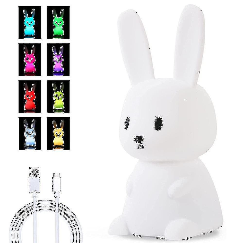 1.Safe & Soft Silicone MaterialThe cute buuny night light made of washable silicone, rebounce back rapidly after being squeezed. Safe and soft haptic for your baby to easy to grippable and play freely .The rabbit kids night light for Toddler, Baby, Girls, Boys, Children Gift, women ,Bedroom.
