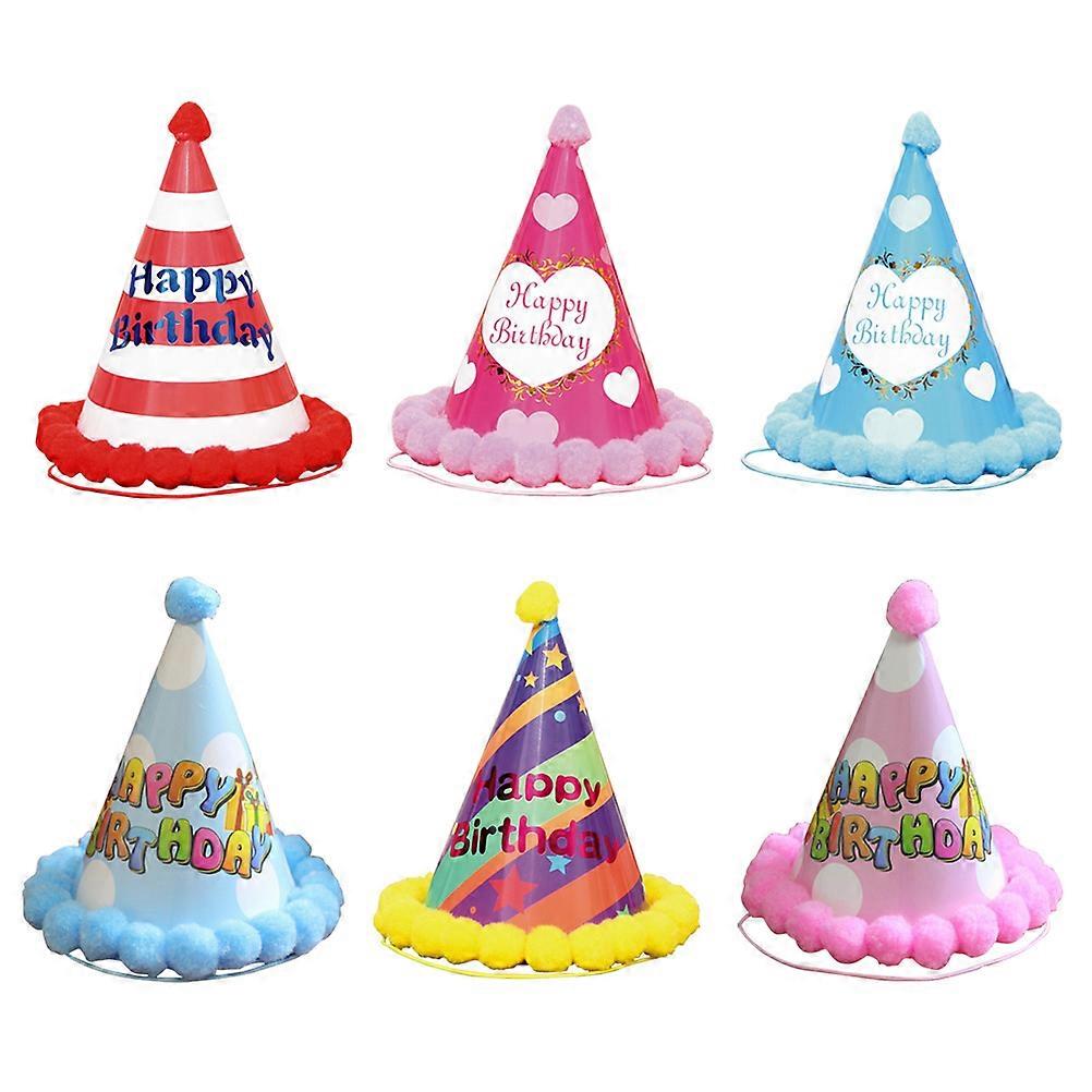 Kid Party Hat Children Birthday Pointed Hat Pompom Ball Assorted Color 19x15cm Party Decoration 6Set
