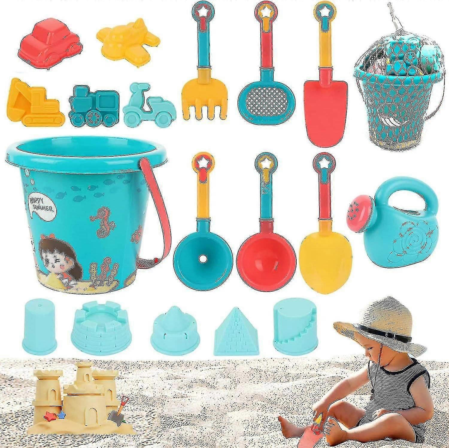 Kids Beach Toys, 18 Piece Beach Sand Toys Set with Bucket, Strainer, Shovel, Rake Outdoor Summer San
