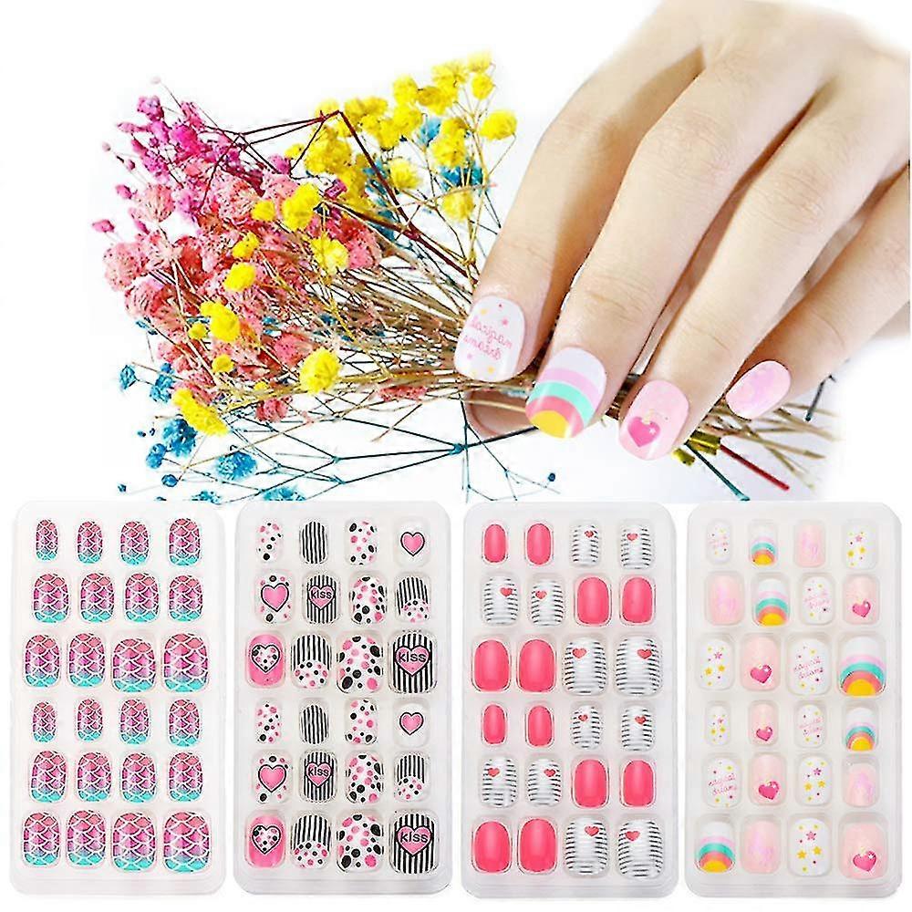 Kids Press On Nails, 96pcs Girls Short Fake Nails Pre Glue Full Cover Children False Nails Tips Cute Heart Pattern Acrylic Nails For Girls Kids Nail S