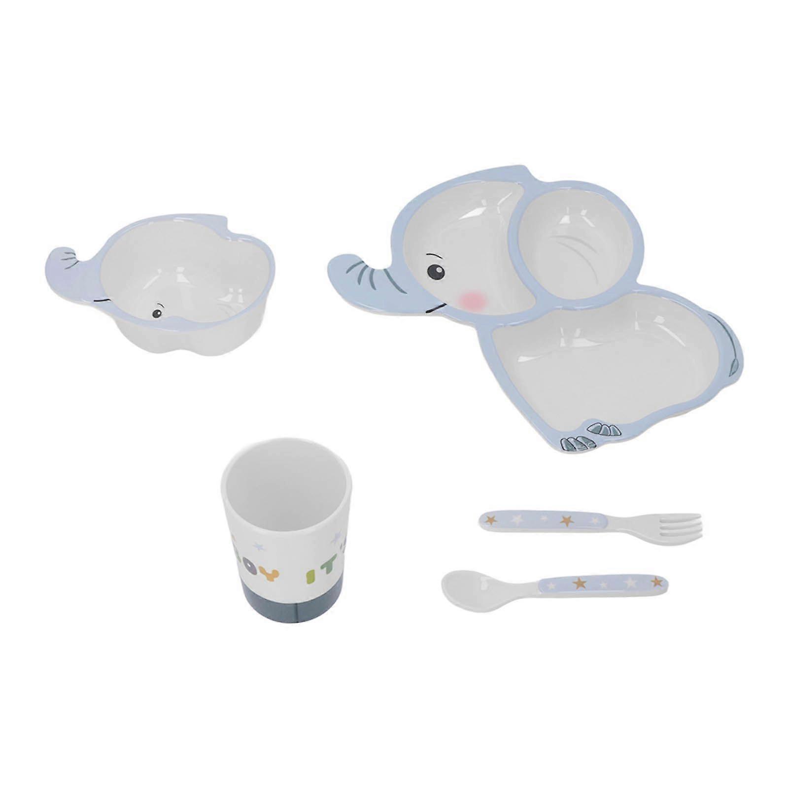 Kids Plate Set Melamine Cartoon Elephant Shape Machine Washable Baby Feeding Divided Plate with Fork Spoon Bowl Cup