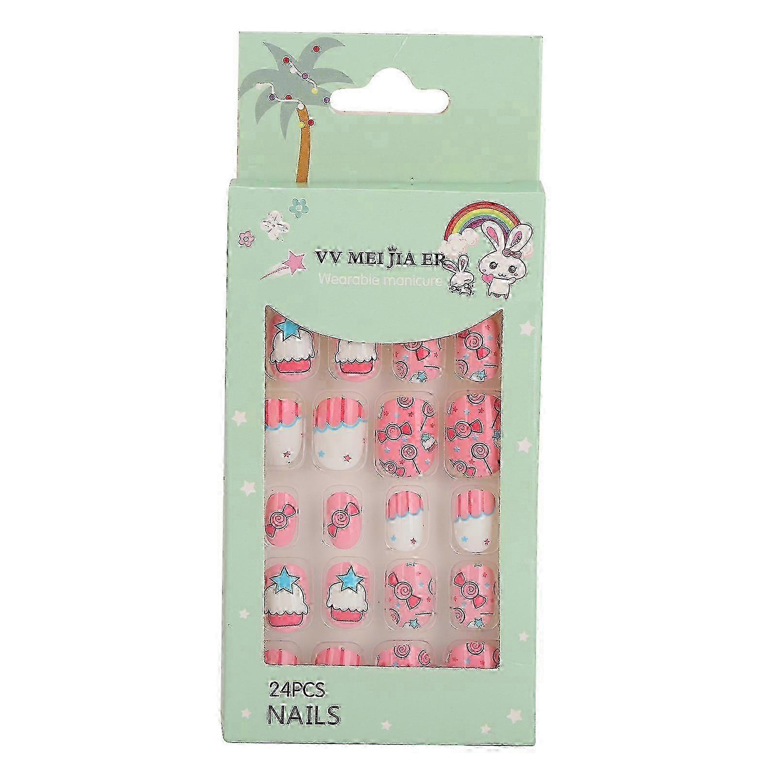 Kids False Nails 24pcs Removable Full Cover Artificial Nails, Cartoon Pattern Press On for Girls, Easy Application, Reusable Fake Nails Set