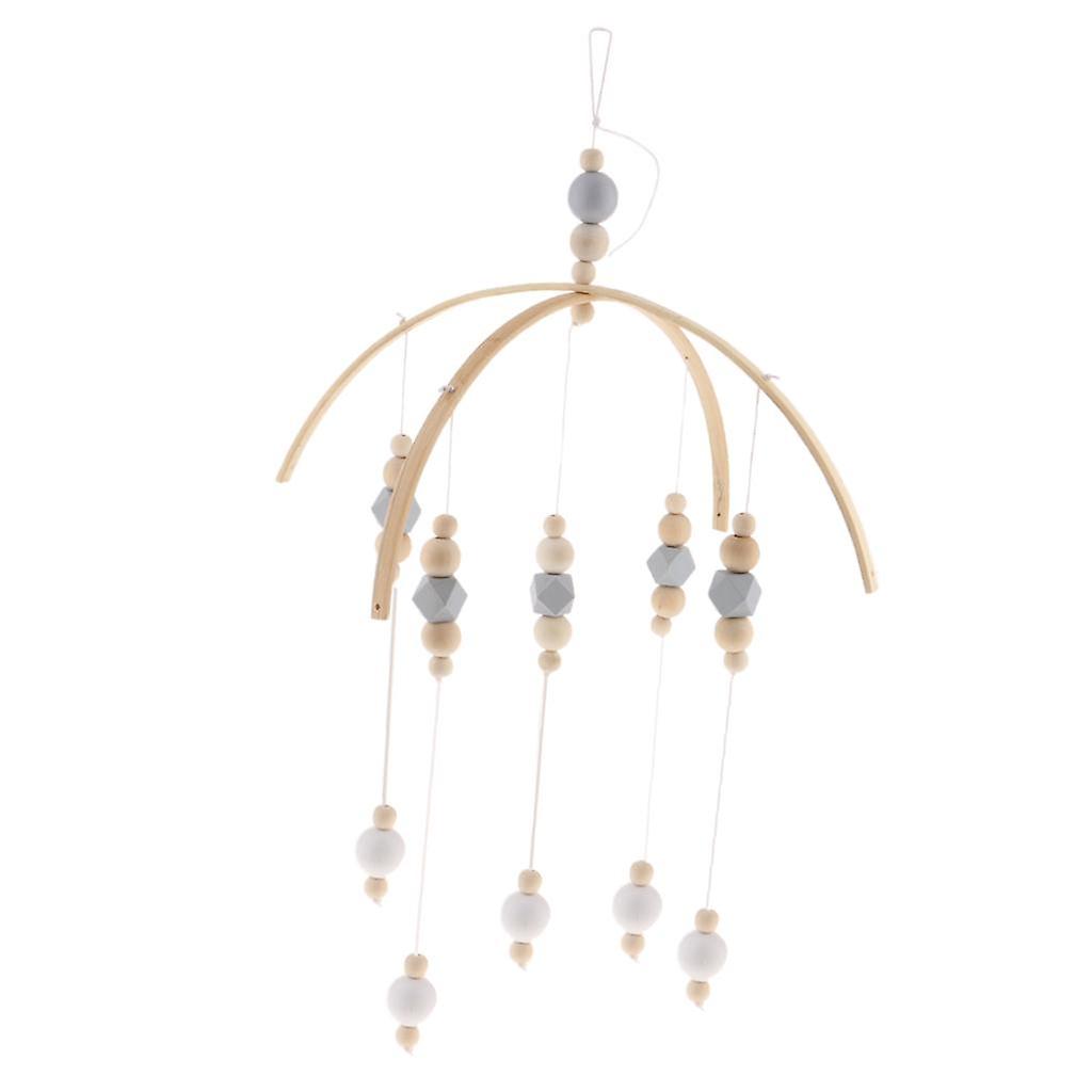 Kids Crib Mobile Bell Wooden Wind Chime Hanging Room Decor Gray - A