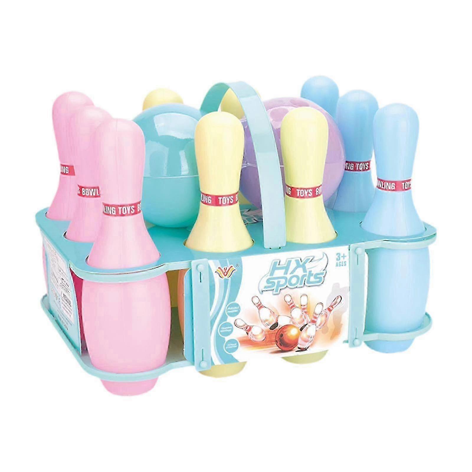 Kids Bowling Set Interactive Indoor Sport Game with Rack, Early Development Bowling Toy Game, Macaroni Color 23 cm
