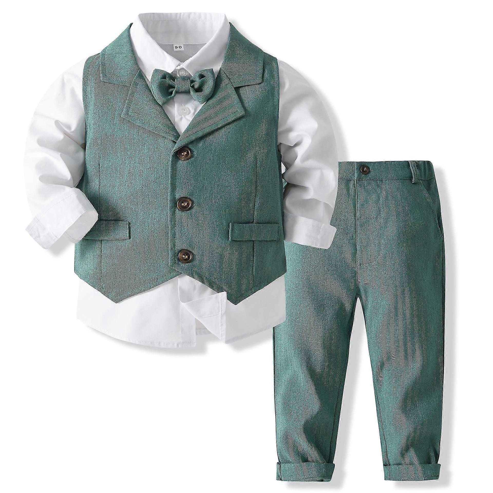 Kids Boy Gentleman Clothing Set Long Sleeve Tie Shirt + Waistcoat + Pants Toddler Boy Formal Outfits Wedding Party Dress Outfits