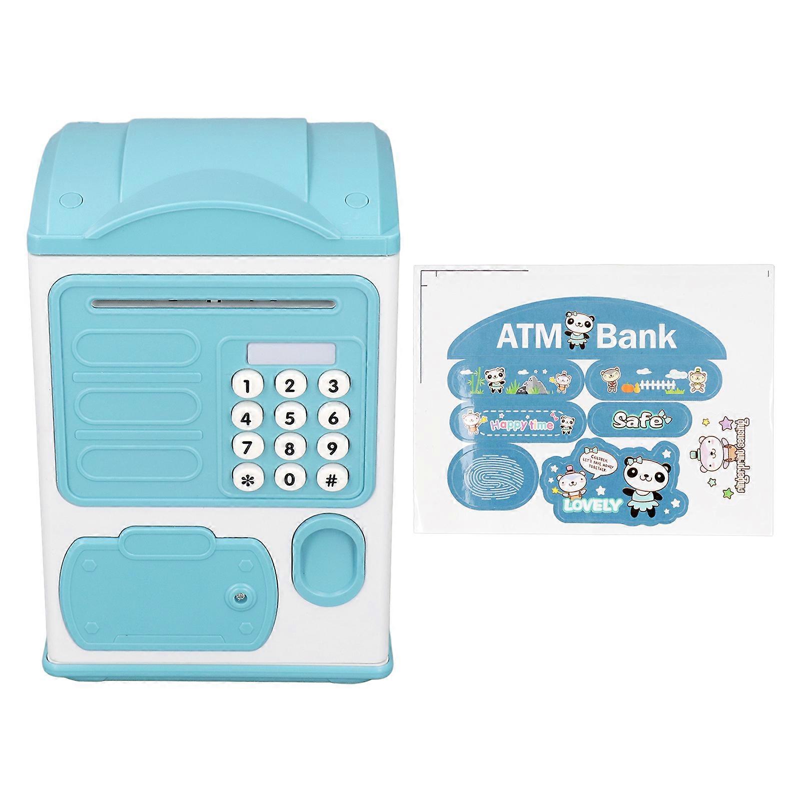 Item Type: Kids Money Bank_x000D_ Material: ABS, Electronic Components_x000D_ Weight: Approx. 297g / 10.5oz_x000D_ Battery: 3 AA Batteries (Not Included) 1Automatic Paper Money Scroll: Put the paper money on the scroll, it can be rolled into the machine automatically. But it doesn't work if the paper is too old or too soft. 2Password Piggy Bank: You can set and change to 4 digits password. If you forgot your password, please remove the battery and reinstall it. 3Fingerprint Unlocking Simulation: Never need to worry that you need to break it in order to get the money out. Enter the correct password and press your fingerprint to open it. 4Safe: Kids money bank is made of environmental ABS plastic, sturdy and not break easily. Safe simulation design. Great gift for children kids. 5Perfect Gift for Children: Money saving box with high capacity is interesting and funny, a must item for child or gifts, greatly help you to develop a good habit of saving money. 1 x Kids Money Bank 1 x Sticker