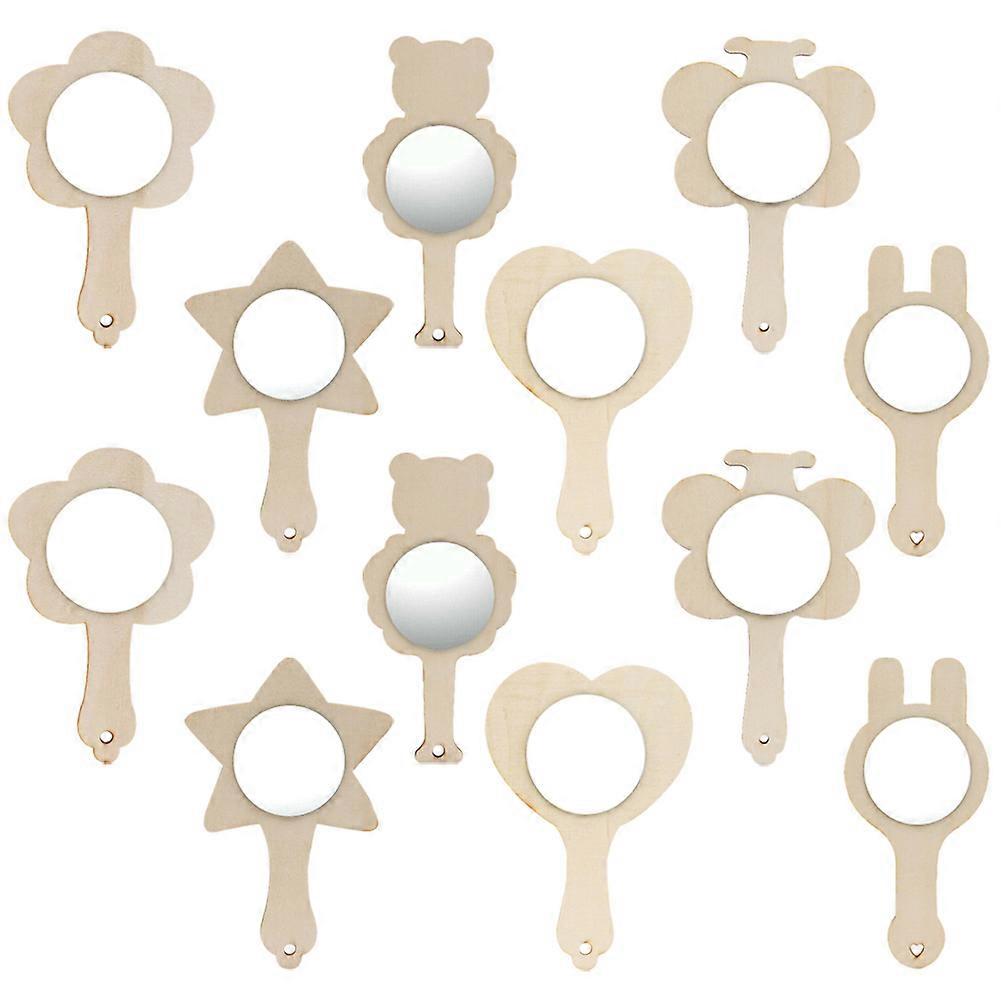 Kids Room Decoration 12Pcs Shatterproof Handheld Mirror Flower Shape Unfinished For Khaki Color