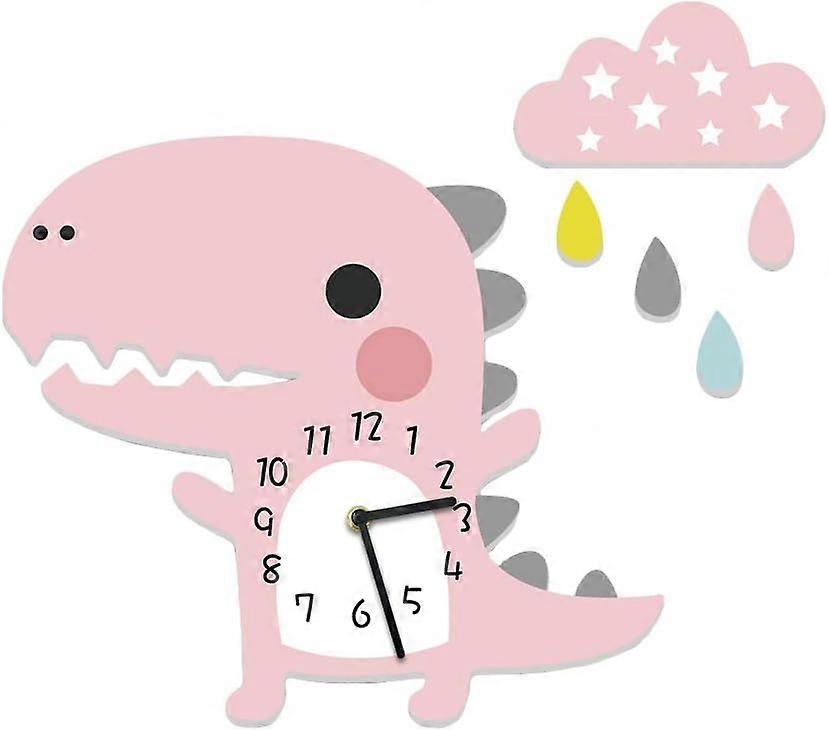 Kids Wall Clock Dinosaur with Clouds Clock Without Ticking Noise Silent Clock Boy Wall Clock Pink