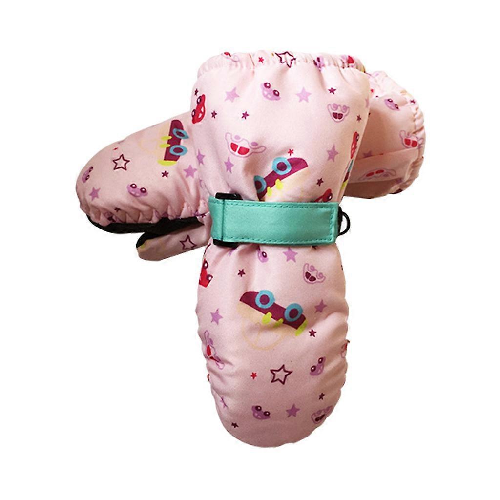 Kids Children Ski Gloves Winter Snow Snowboard Windproof Waterproof Outdoor Sports Adjustable Wrist Thicken Mitten Pink