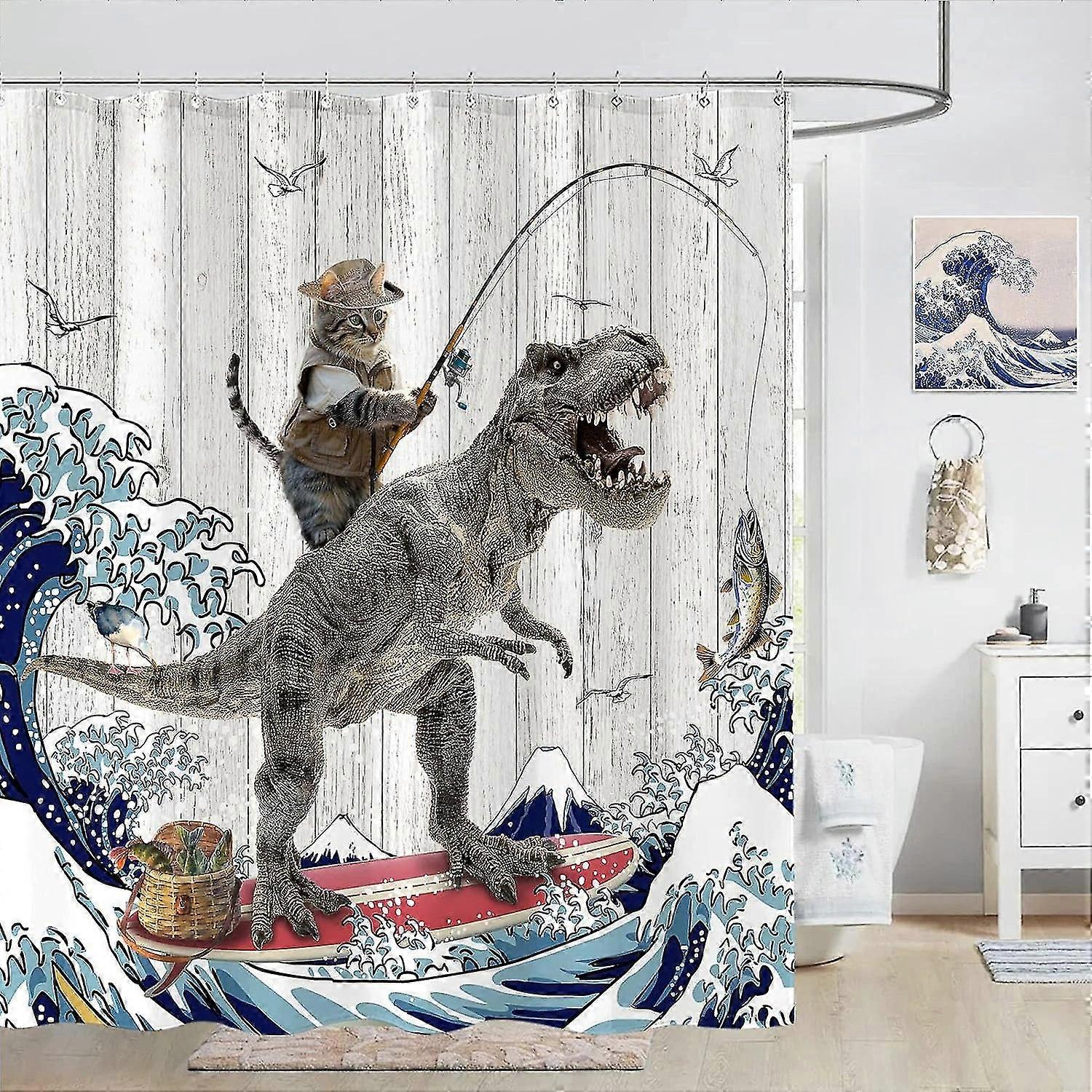 Kids Rustic Bath Curtain 180x200cm-70x78in 1152sc Cat Wave Decor Fabric Bathroom Curtains Cat Shower Curtain